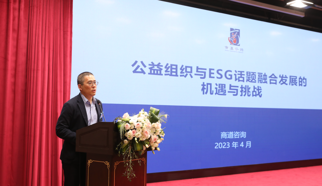 简报论坛现场,商道纵横北京办公室合伙人张圣以《2023年公益组织与ESG话题融合发展的机遇与挑战》为题进行了主题发言。