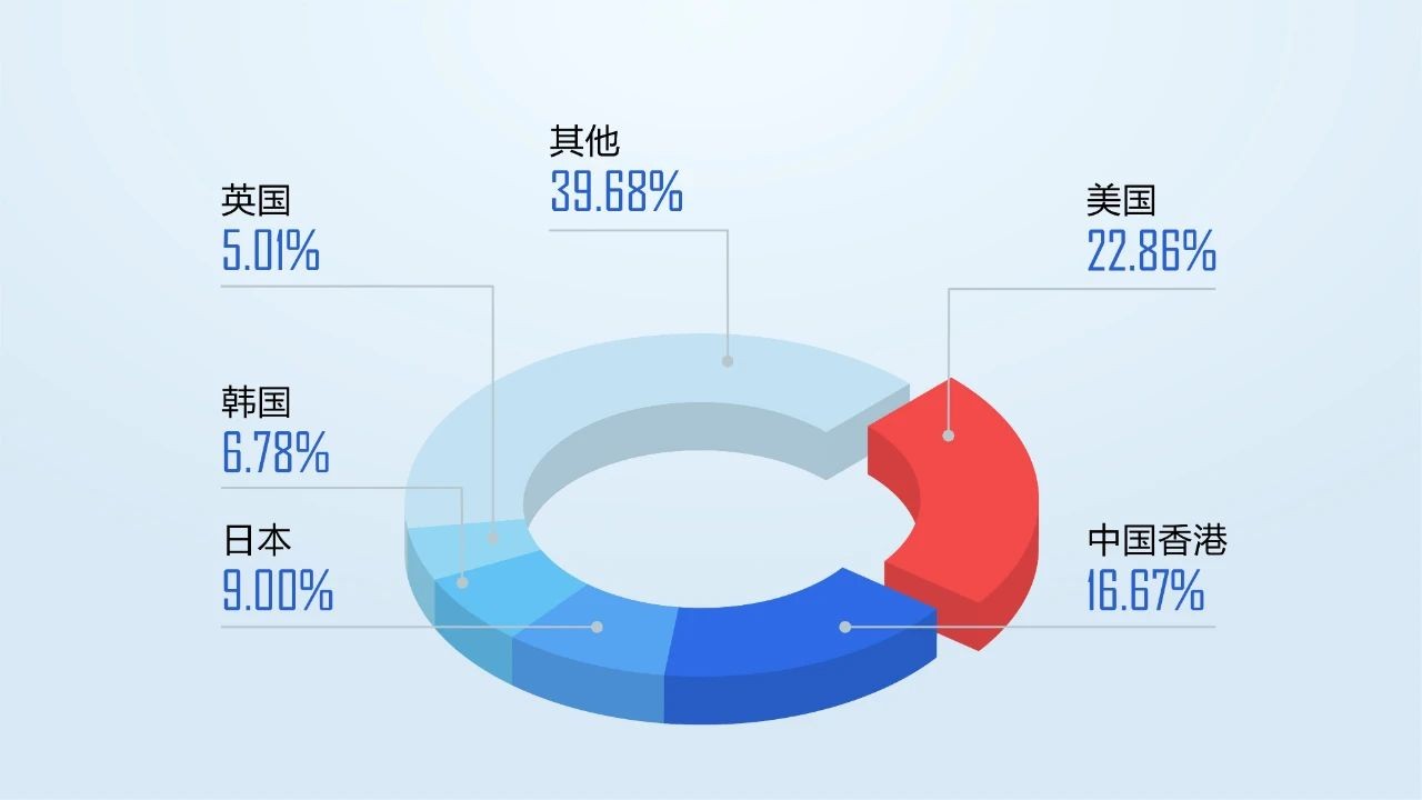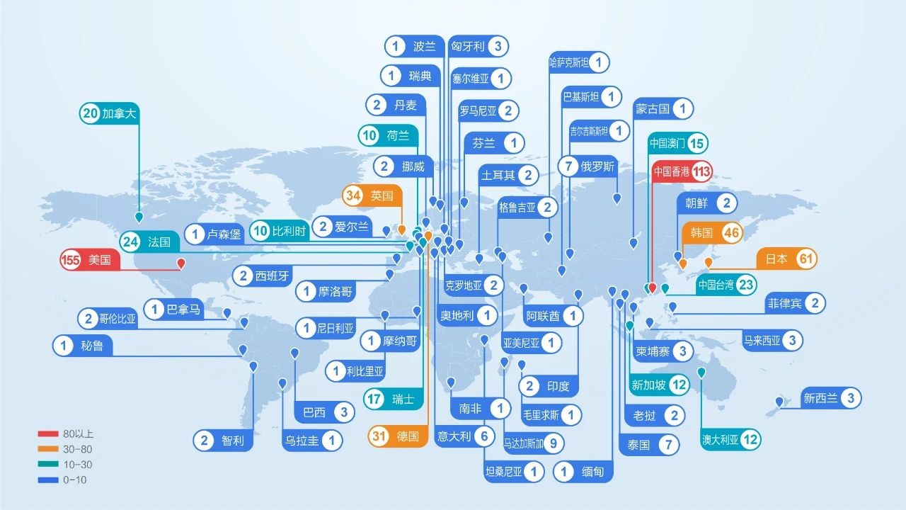 已登记的678个代表机构中,组织所在国家或地区排名前5的为美国、中国香港、日本、韩国和英国,合计共占总数的60.32%。