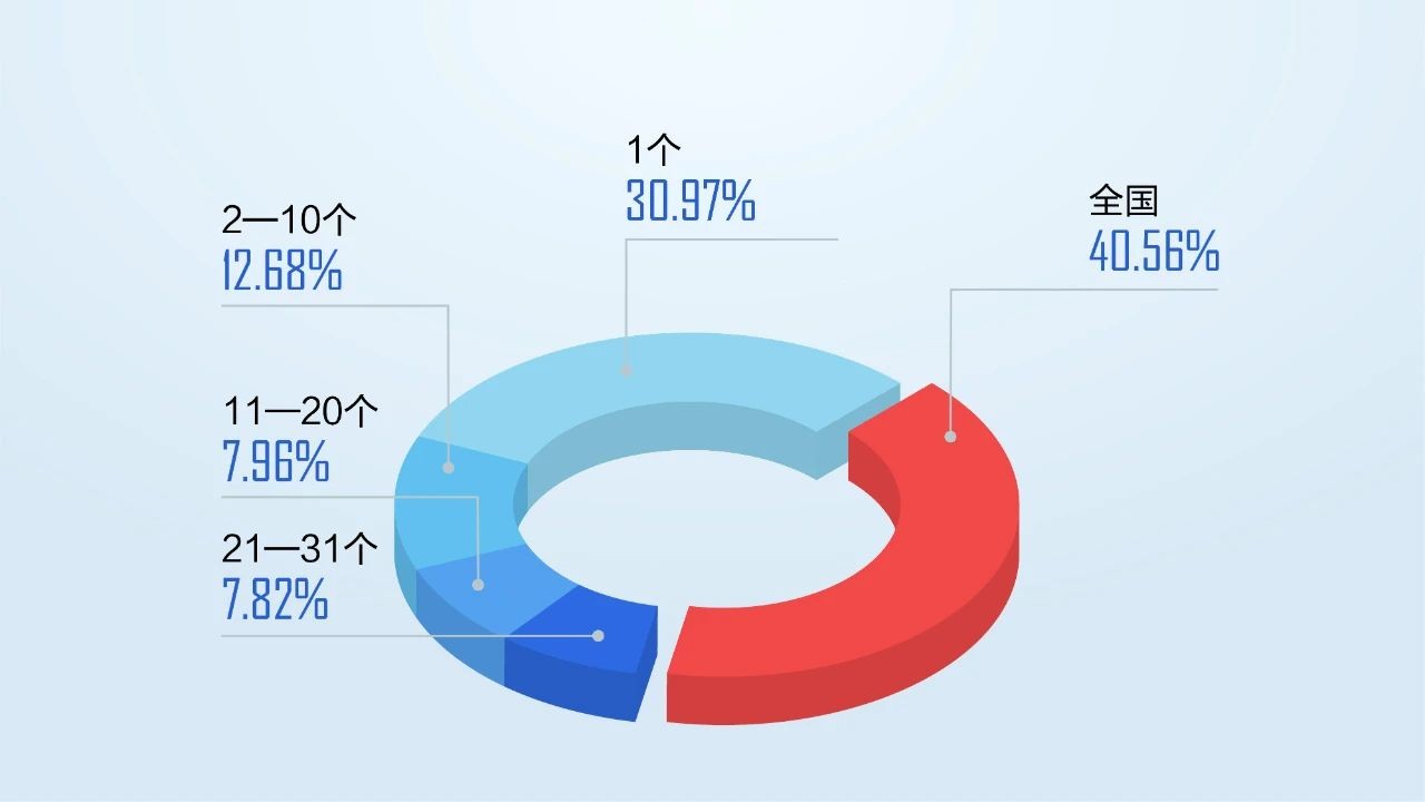 代表机构活动地域为全国的有275个,占总数的40.56%;活动地域为多个省级行政区的代表机构有193个,占总数的28.47%;活动地域为单个省级行政区的有210个,占总数的30.97%。