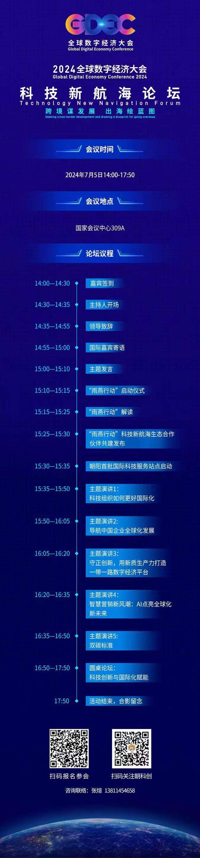 全球化发展背景下,加强国际合作,融入世界发展大潮势在必行。习近平总书记在中央全面深化改革委员会第五次会议中指出:要坚持“走出去”和“引进来”相结合,扩大国际科技交流合作,建设具有全球竞争力的科技创新开放环境,努力构建合作共赢的伙伴关系,前瞻谋划和深度参与全球科技治理。朝阳区紧密围绕北京国际科技创新中心和全球数字经济标杆城市建设,积极构建“3+X”科技产业新格局。朝阳区拥有“一核两区三优势”的特点,围绕北京数字经济核心区功能定位,强化全国首家国际科技组织总部集聚区和国际创业投集聚区的集聚效应,依托国际化、场景应用、产业空间优势,拟举办2024全球数字经济大会科技新航海论坛,围绕科技创新开放生态环境、政策法规、国际市场洞察等热点内容,邀请多领域权威嘉宾共同探讨科技跨境发展的新模式和新路径,推动双集聚区建设成为国际学术交流中心、开放科学共享中心、前沿科技感知中心和科技人文合作中心,助力营造具有国际竞争力的创新生态,构建具有全球竞争力的科技创新开放环境,推动双边或多边国际科技合作在朝阳集聚。