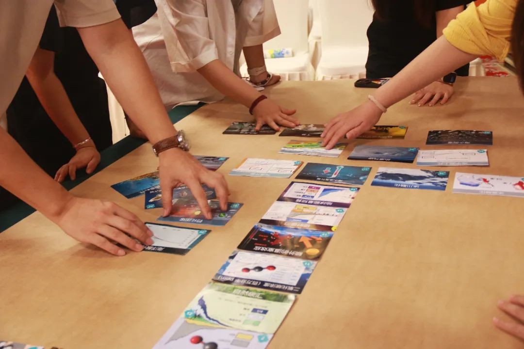 气候拼图桌游由法国气候学教授塞德里奇·灵根巴赫(Cédric Ringenbach)在清华大学访问期间研发而成。四位引导师带领现场参与者通过协作,互动互助,利用集体智慧完成游戏,从而潜移默化地体会人类活动给气候变化带来的巨大影响。